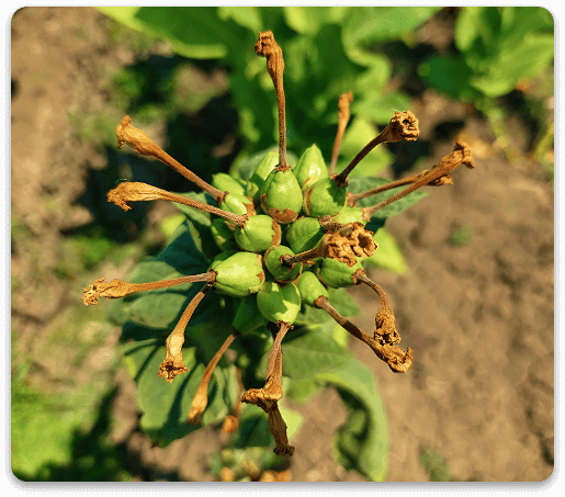As tobacco plants reach the flowering and maturation stage, their water requirement generally decreases. However, an optimum level of soil moisture should still be maintained to prevent excessive stress on plants and ensure the development of high-quality tobacco leaves.